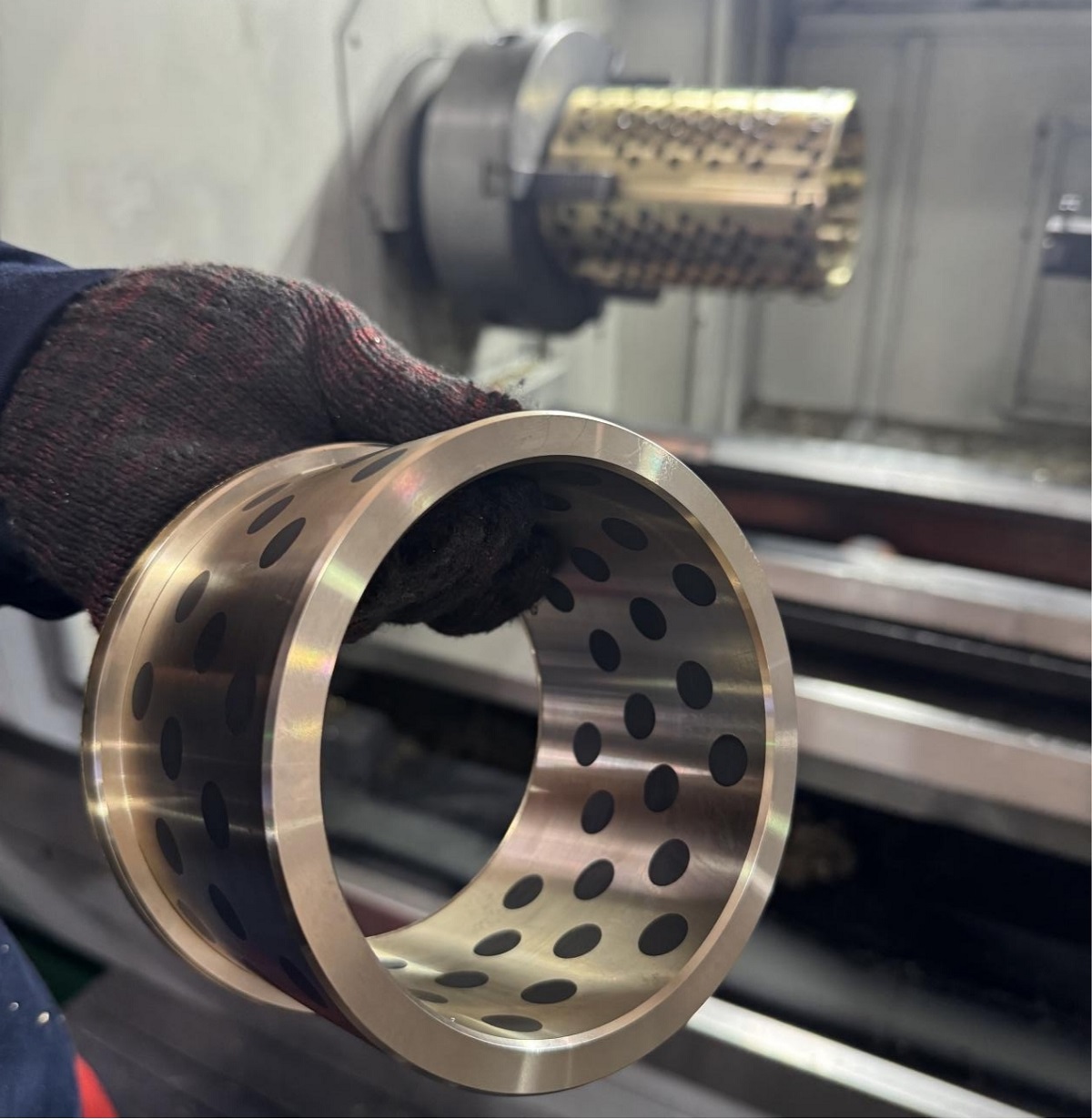 Bakır alaşımlı kendi kendine yağlama malzemeleri, teneke (SN) ve alüminyum (AL) gibi alaşım elemanları ile birlikte grafit ve molibden disülfür (mos₂) gibi katı yağlayıcılarla güçlendirilmiş bir bakır matristen oluşur. Tin, alaşım mukavemetini ve korozyon direncini arttırırken, alüminyum yüzey performansını iyileştirmek için yoğun bir oksit film oluşturmaya yardımcı olur. Kurşun gibi unsurlar da tribolojik özellikleri etkili bir şekilde optimize eder.